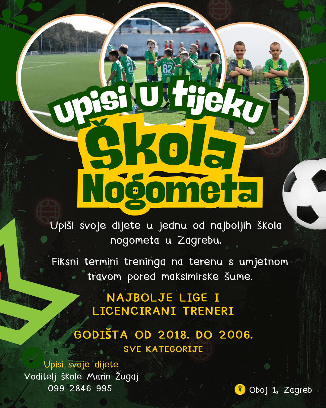 Odlična škola nogometa u lijepom ambijentu uz maksimirsku šumu.
